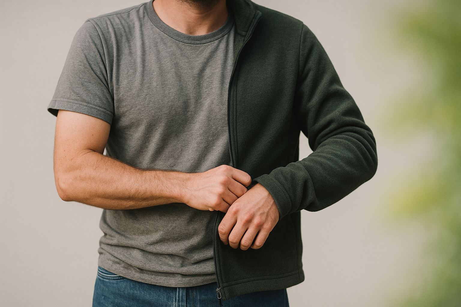 A continuación, considera tu capa intermedia, que actúa como aislante. Esta capa debe retener el calor y, al mismo tiempo, permitir la transpirabilidad. El forro polar es una opción popular por su capacidad para brindar calidez sin añadir volumen. Una sudadera o jersey de forro polar de la colección masculina o femenina de Climbers Code podría ser perfecto para esta función.